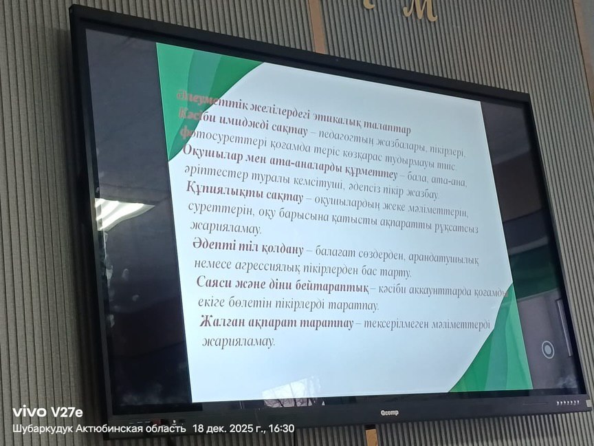 Педагогтердің әлеуметтік желіде, қоғамдық орындардағы этикалық талаптары.