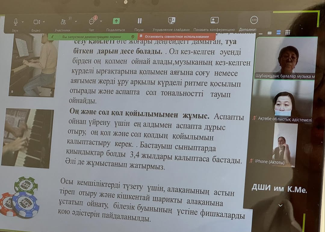 Ақтөбе облыстық әдістемелік орталығының ұйымдастыруымен “Балаларға қосымша білім беруде оқу-тәрбие жүйесін ұйымдастыру” тақырыбында облыстық семинар өтті. Семинар барысында мектебіміздің оқу-ісі орынбасары Ихласова Жанар Омаровна «Ерекше білім беруді қажет ететін балаларды қосымша білім беру жағдайында оқыту ерекшеліктері» тақырыбында баяндама оқыды.