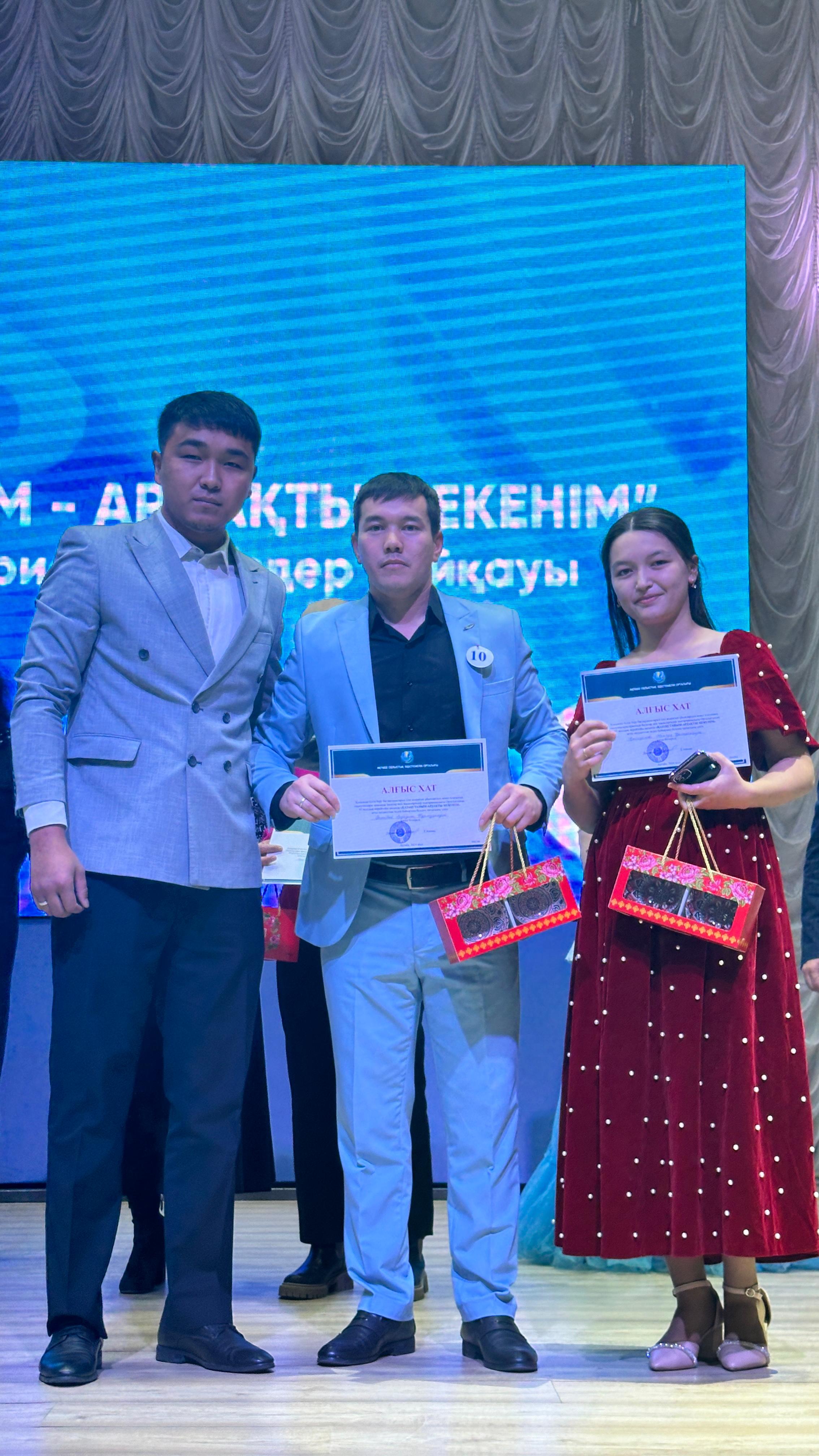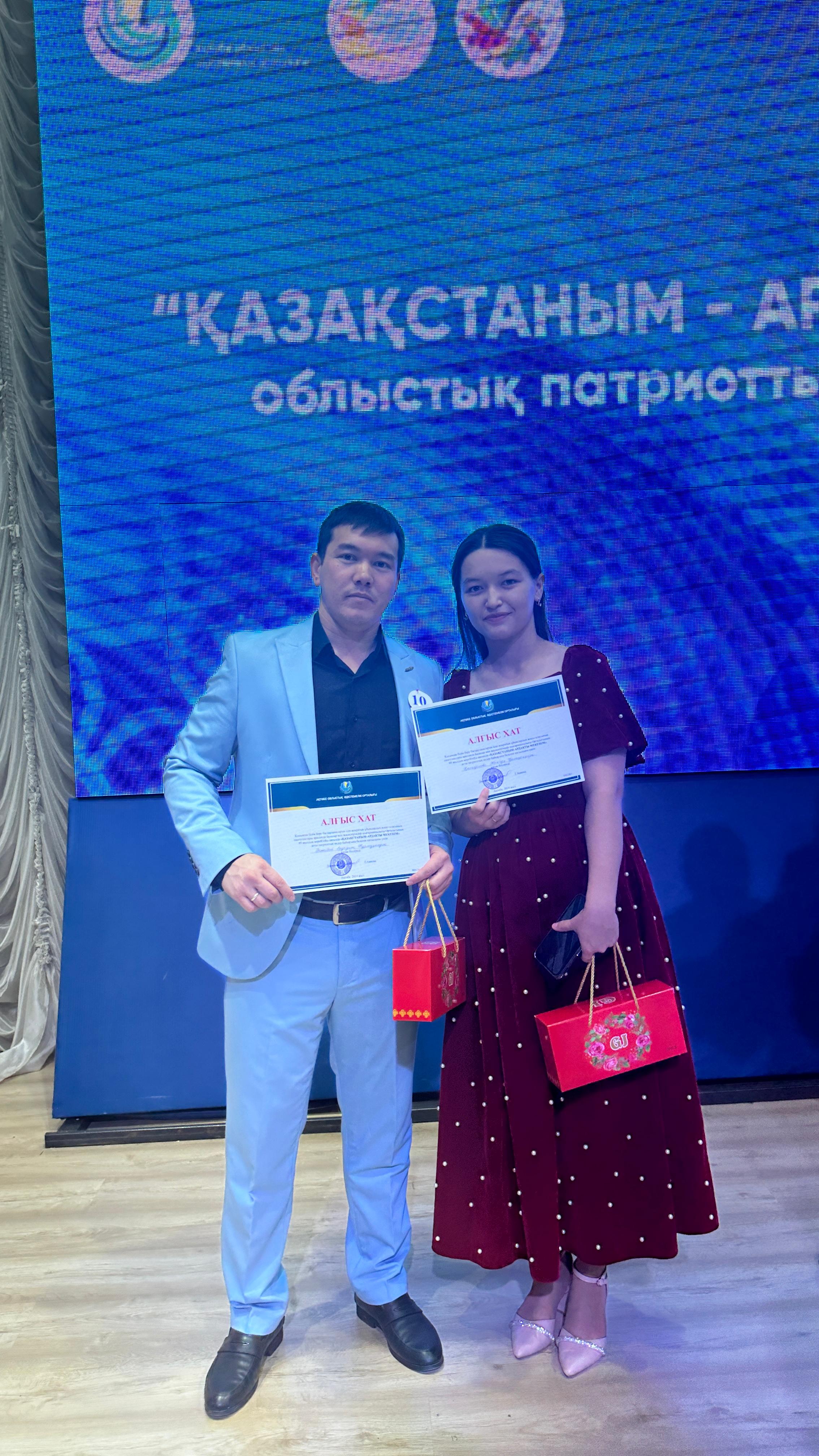 Қосымша білім беру бағдарламаларын іске асыратын ұйымдардың вокал класының оқытушылары арасында Балалар мен жасөспірімдер шығармашылығы орталығының 95 жылдық мерейтойы аясында «ҚАЗАҚСТАНЫМ - АРДАҚТЫ МЕКЕНІМ» атты патриоттық әндер байқауына мектебіміздің мұғалімдері Тәжібай Ердаулет Нұрмұқанұлы мен Қалиқанова Жангүл Қалиқанқызы белсене қатысып, АЛҒЫС хатпен марапатталды.