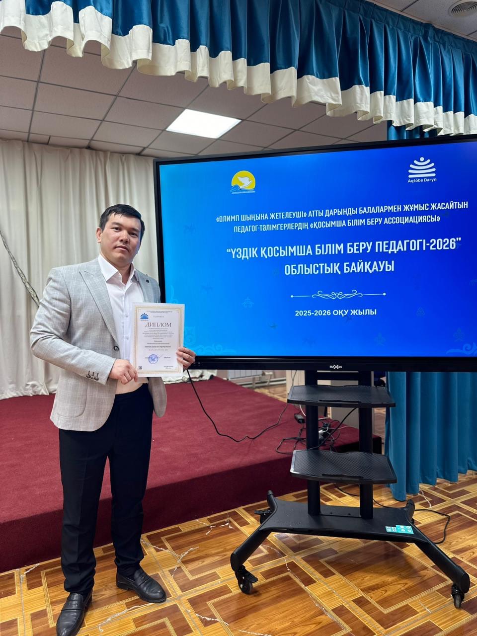 "Ақтөбе-Дарын" өңірлік ғылыми- тәжірибелік қосымша білім беру орталығында, "Олимп шыңына жетелеуші" атты дарынды балалармен жұмыс жасайтын педагог-тәлімгерлерге "Үздік қосымша білім беру педагогі-2026" атты облыстық байқауы өткізіліп, Шұбарқұдық балалар музыка мектебінің домбыра класының мұғалімі Тәжібай Ердәулет Нұрмұханұлы қатысып жүлделі II дәрежелі дипломмен марапатталды.