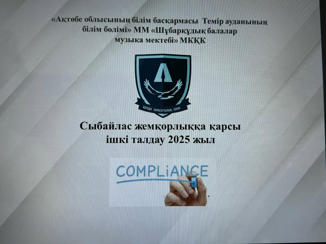 Шұбарқұдық балалар музыка мектебінде 2025 жылы 8 желтоқсан күні сыбайлас жемқорлыққа қарсы жас мамандарға адам бойындағы адалдық, татулық, достық, қамқорлық, мейрімділік адами қасиеттердің өмірдегі маңыздылығын түсіндіру, адамдардың өмірінде – отбасы, білім ордасы және қоғамда әділдік пен адалдықтың алатын орны ерекше екені туралы ой - пікірлерін кеңейту мақсатында «Парасатты ұрпақ – жарқын болашақ кепілі» - тақырыбындағы тәрбие-дәріс сабағы өтті.