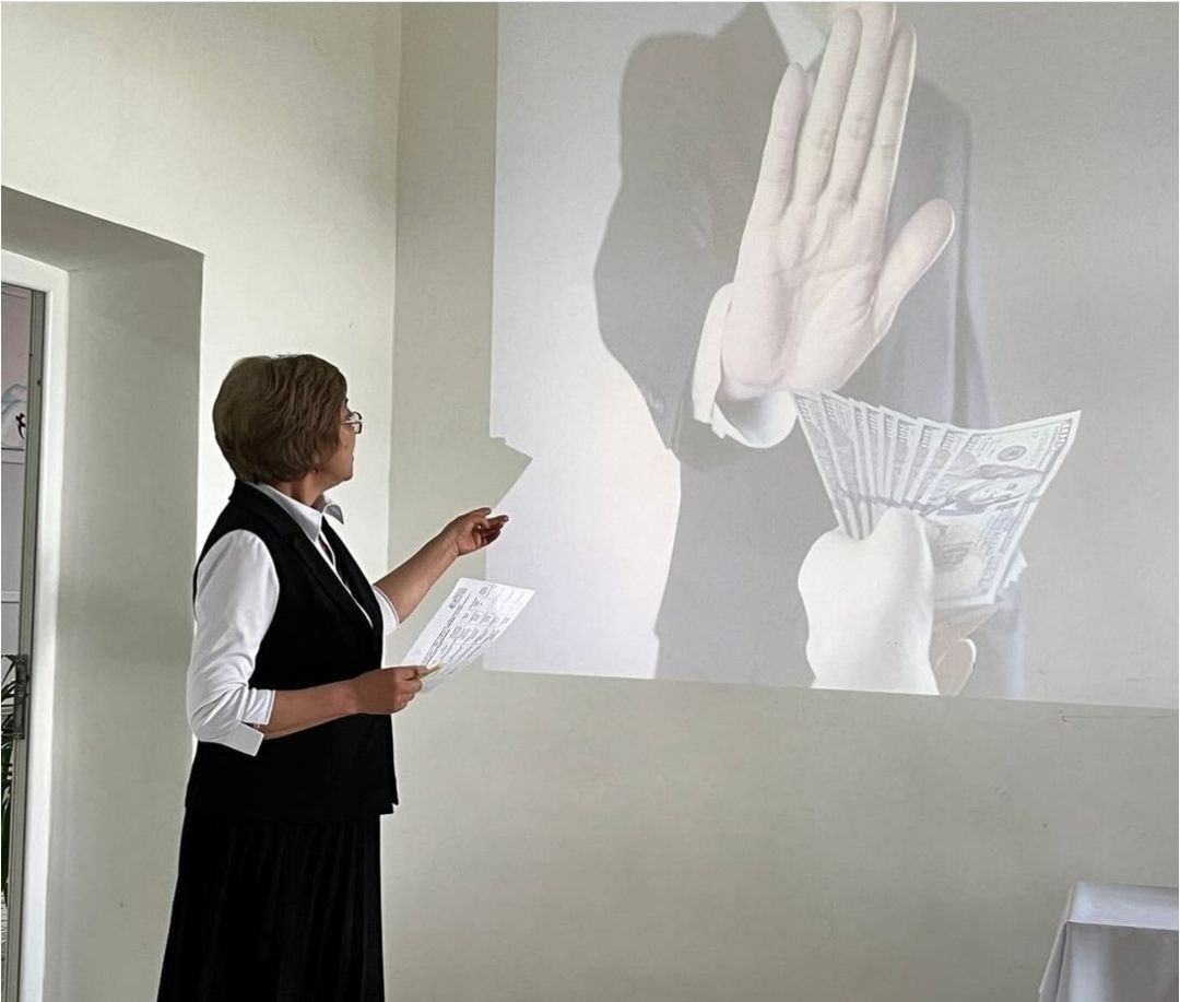 Мектебіміздің қызметкерлері арасында әлеуметтік бейнебаяндар көрсетіліп, сыбайлас жемқорлықтың алдын алу мақсатында жағдаяттар берілді. Қызметкерлер екі топқа бөлініп, бейнебаяндағы жағдаяттар туралы өз ойларымен бөлісті.