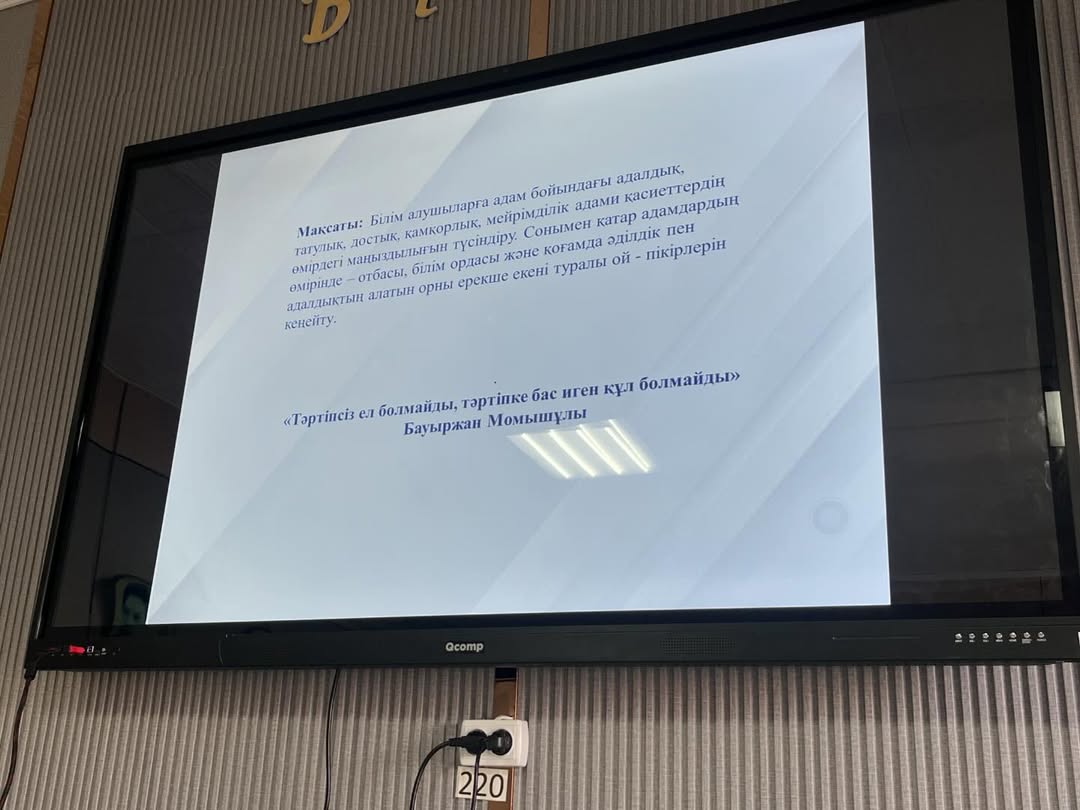 Сыбайлас жемқорлықтың алдын- алу мақсатында оқушылардың назарын адалдық қасиетті қалыптастыру, әділетсіздікке қарсы тұру проблемаларына аудару үшін “Адалдық нені білдіреді?”, “Адалдық құндылығы” тақырыбында видео -роликтер көрсетілді.